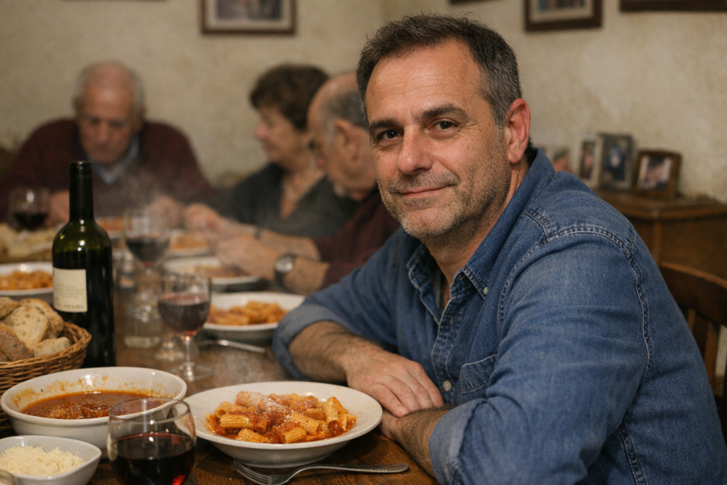 Na Itália, especialmente fora dos grandes centros, a proximidade entre gerações ainda é comum. O convívio frequente fortalece a transmissão de valores.
